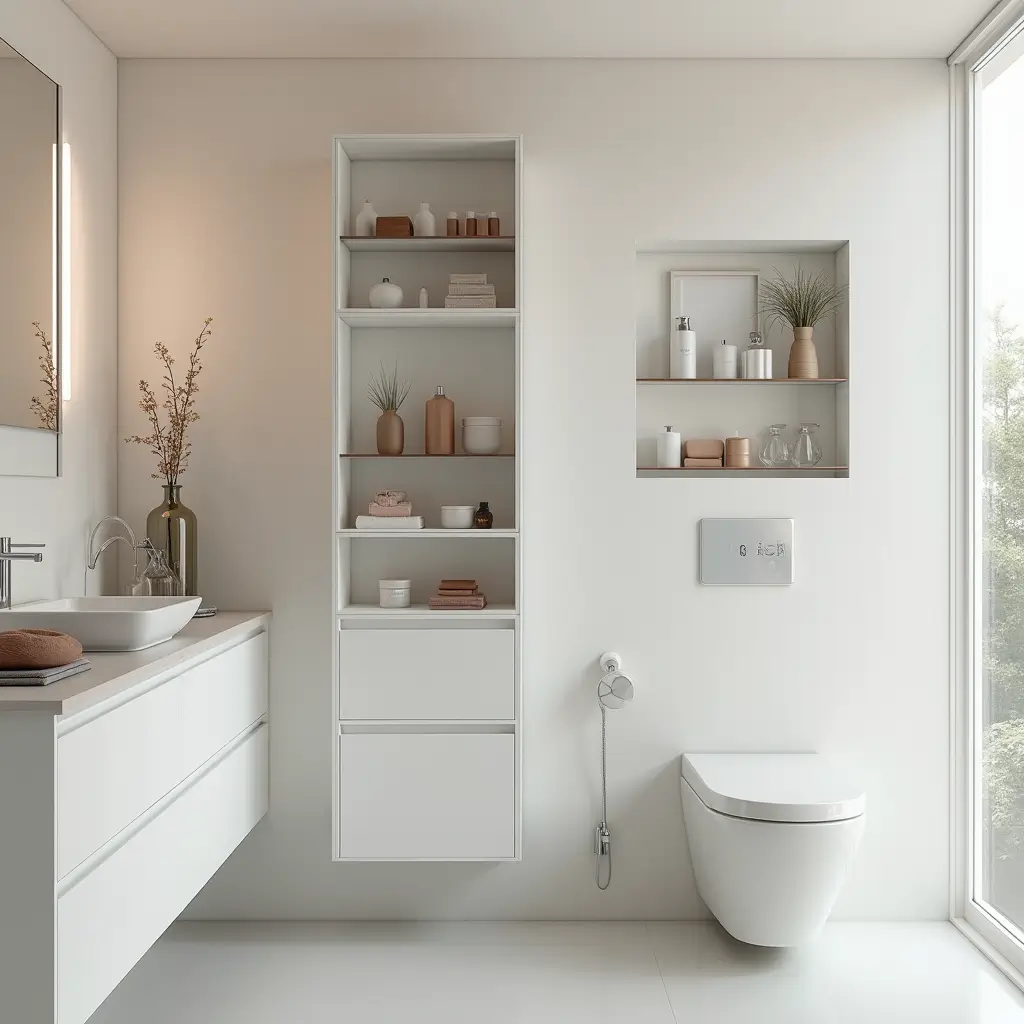 There are many ways to use vertical space. Over-the-toilet storage units are great for the area above your toilet. Wall-mounted shelving systems add storage without taking up floor space. Door-hanging organizers are perfect for towels, toiletries, and cleaning supplies.