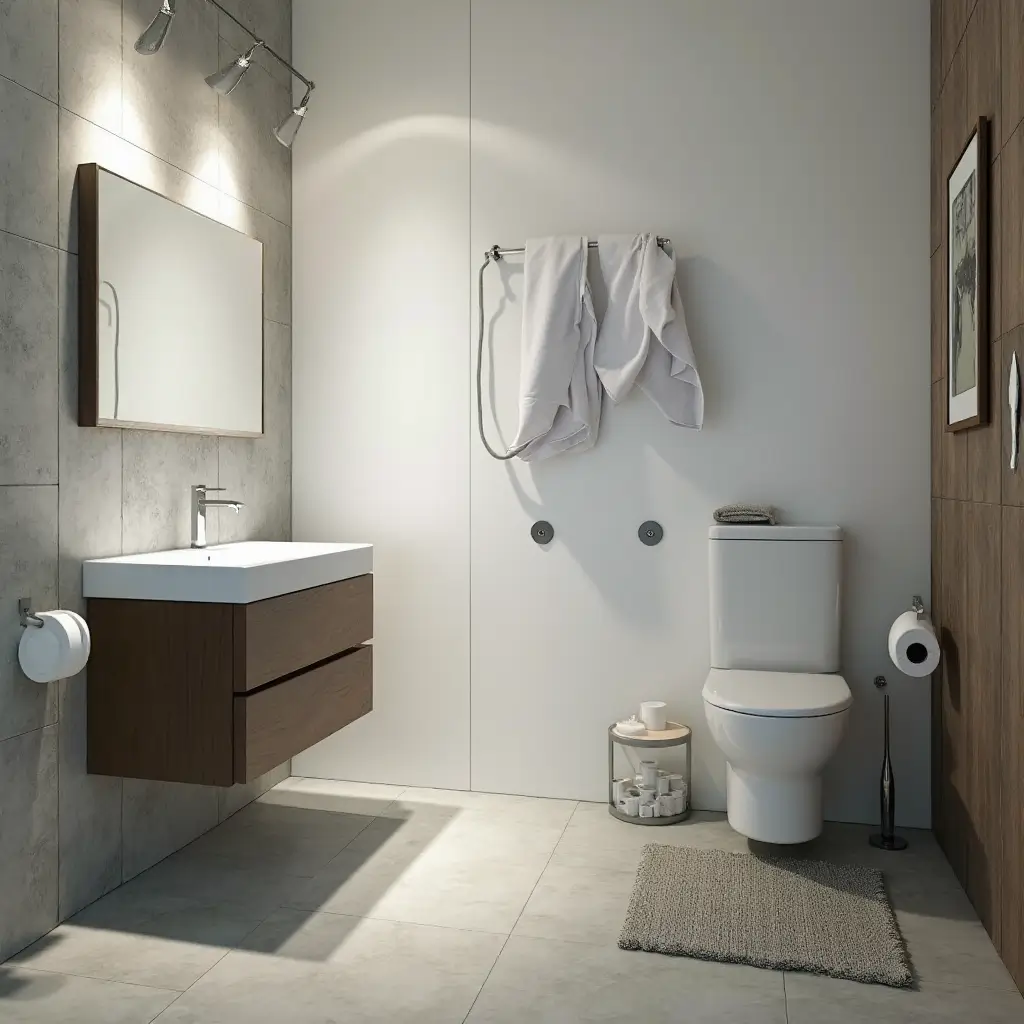 - Utilize wall-mounted storage systems for toilet paper holders and other items
